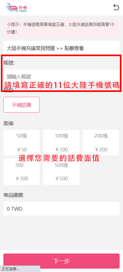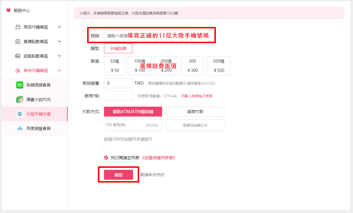 大陸手機話費充值教學